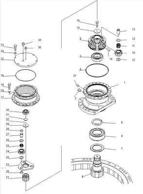 বেল পার্টস এক্সক্যাভেটর সুইং গিয়ারবক্স PC220-7 জন্য কমাতসু সুইং হ্রাস assy 206-26-00401 206-26-00400